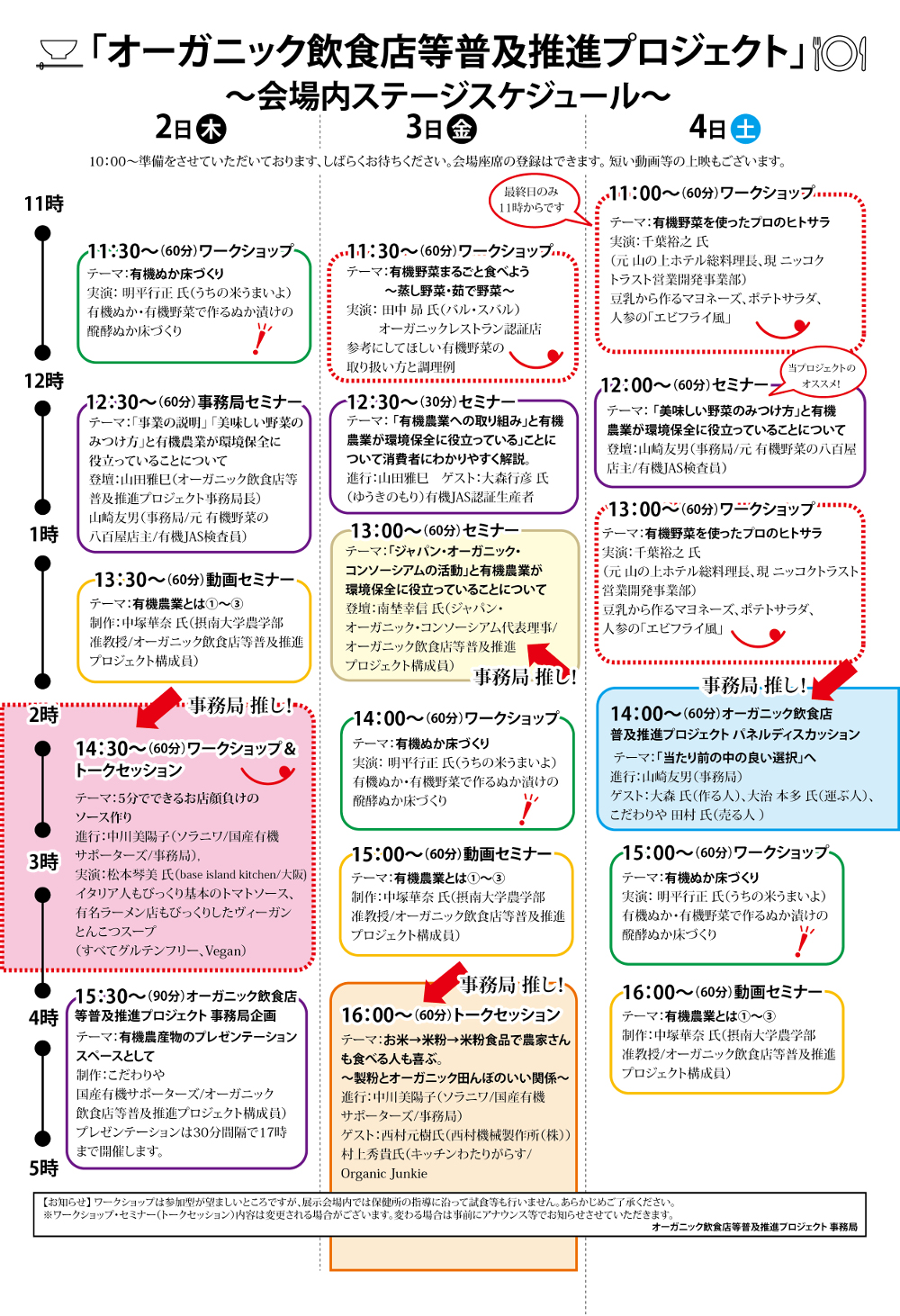 オーガニック飲食店等普及推進プロジェクトによる、東京会場セミナー&ワークショップのステージスケジュールが決定!2025年10月2日(木)~4日(土)に開催される「オーガニックライフスタイルEXPO EAST in 東京2025」会場内において開催されます。美味しい野菜のみつけ方や、有機野菜の食べ方提案、シェフによる実演とやトークセッションなども予定しています。是非ご参加ください。