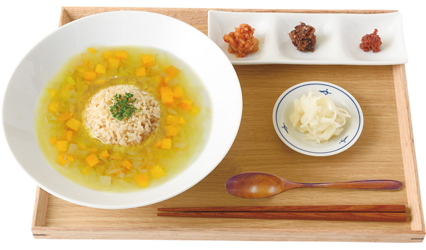 さらに2025年、このスープをベースに有機玄米と組み合せた「スープごはん」メニューを開発しました。玄米はビタミン・ミネラル・食物繊維が豊富で、血糖値の上昇がゆるやかな「完全栄養食」です。