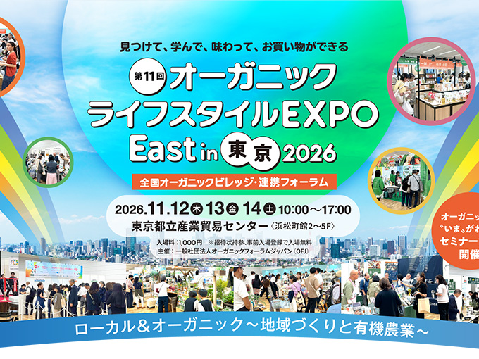 【出展者募集中】「第11回オーガニックライフスタイルEXPO East in 東京 2026」を2026年11月12日(木)・13日(金)・14日(土)の3日間、東京都立産業貿易センター浜松町館にて開催。