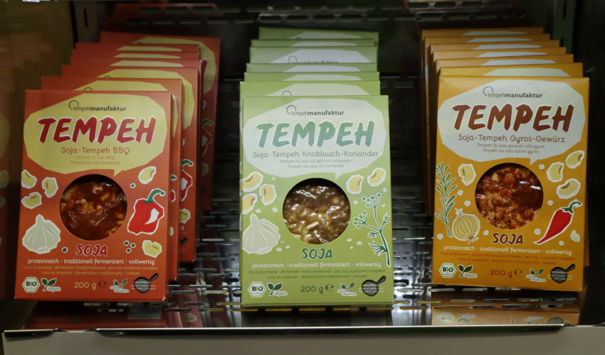 BIOFACH 2024に出展していた、tempehmanufaktur。もともとテンペはインドネシア発祥の伝統的な発酵食品でドイツでは入手しにくかったが、この食材に魅了されたドイツの創業者が自分たちで作り始め、今ではドイツ国内をはじめ近隣の諸国で事業を展開するようになったそうだ。
