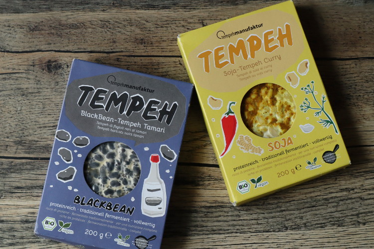 日本ではプレーンなタイプのテンペにしか出会ったことがないが、海外ではテンペのバリエーションが豊富だ。シンプルな大豆を使ったものだけでなく、黒豆やレンズ豆、ルピナス豆(ルパン豆)で作ったテンペ、あらかじめ味がついていて調理の時短にもなる“味付テンペ”などもあって面白い。ORGANIC認証でVEGANなのはもはやスタンダード。発酵食品でありプロテインが豊富であることがPRポイントだ。