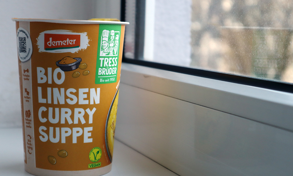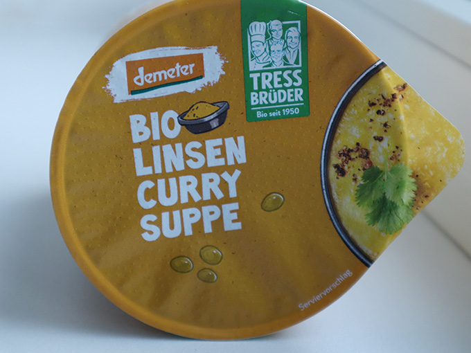 日本では、スープはレトルトタイプの商品が多いイメージがあるが、海外、特にヨーロッパのお店では瓶入り常温保存のものを多く目にする。そんな中で目に入ったのが、TressBrüderのオーガニックスープ。デメター認証でVEGAN。実はこちらはドイツのスーパーREWEで購入したもので、チルドコーナーにあったもの。日本で言うと日配品や総菜とカテゴリーに入るような感じだ。