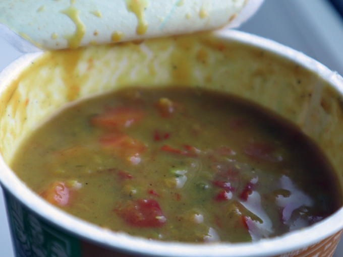 購入したのはレンズ豆のカレースープ。スープの原材料を見てみると、