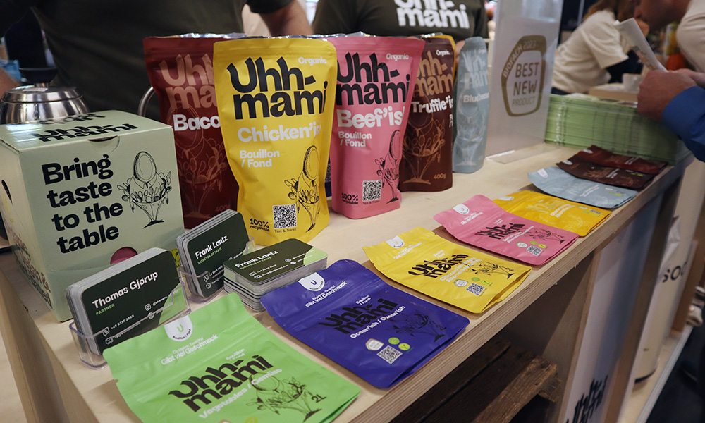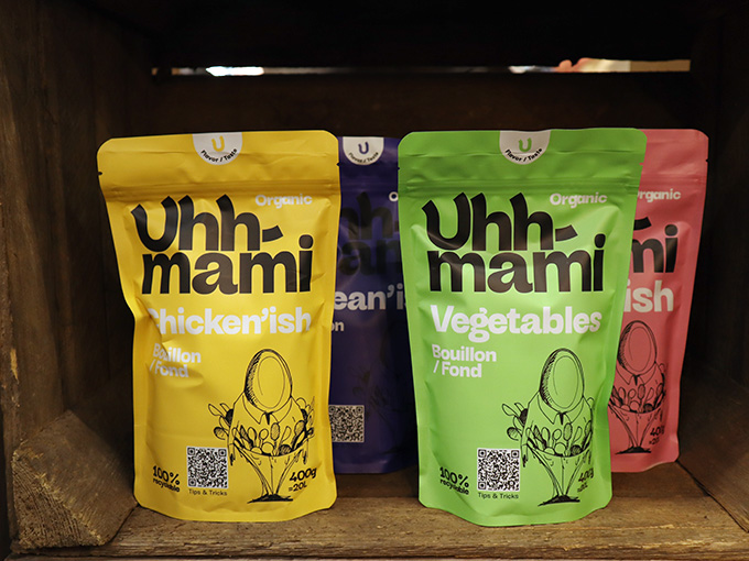 BIOFACH 2024に出展していた、デンマークの「Uhhmami」。読み方が日本の「うまみ」に似ていることから、出汁やブイヨン的なものなのかな?と思い、興味をそそられた。
